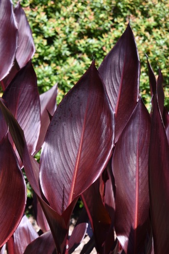 Striking dark black-green foliage. Showy crimson-red blooms that attract bees, butterflies and hummingbirds. Blooms midsummer to fall.