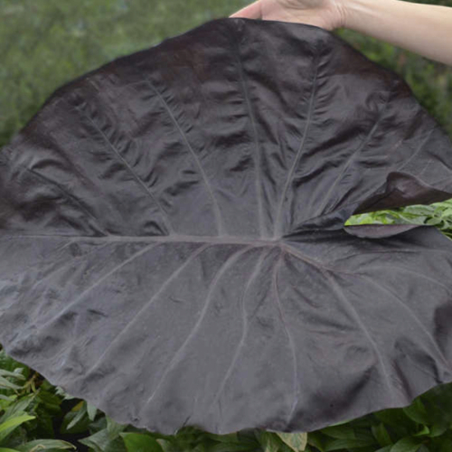 Very large near- black heart-shaped leaves can grow to be 5 feet long and 4 feet wide. Typically grown more for it’s massive foliage. Rapid growth rate. Quite hardy to -12.2°C.