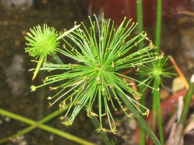 Small sedge of thin, deep green stalks with tufts of foliage. Can grow up to 3 feet tall.