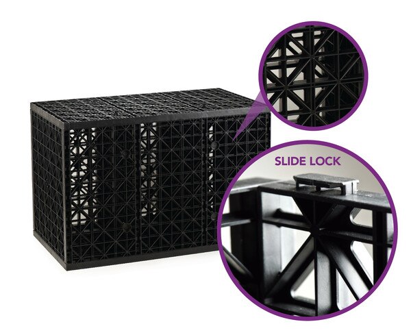 - Eco-Blox lock together quickly and securely, easily supporting landscaping, pavers, gravel or sod for great design versatility