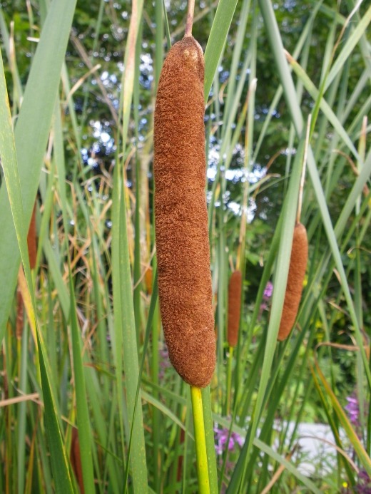 Native to North America. Narrow, upright, grey-green leaves that can grow up to 5 feet tall. Blooms brown cattail flowers in summer that last until winter.