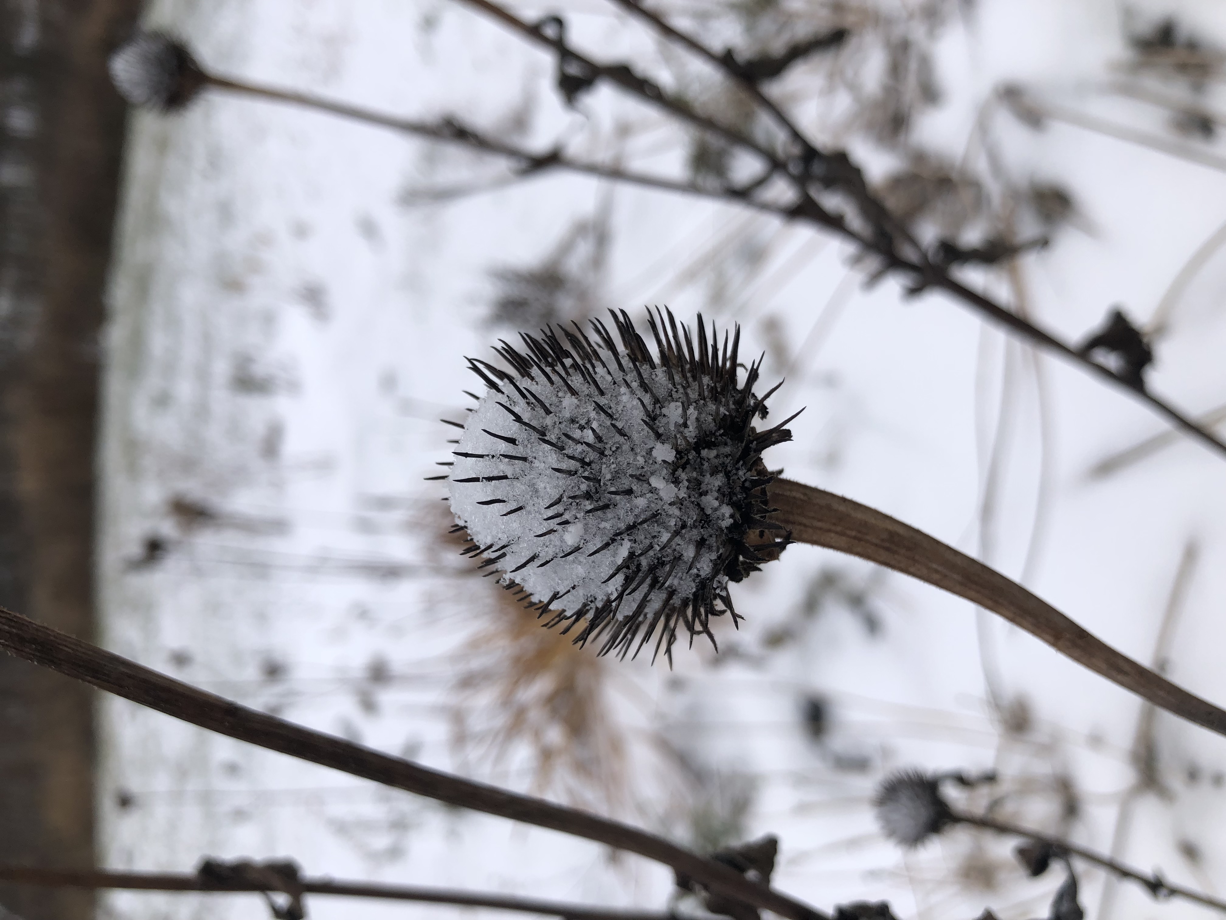 Clump forming plant that produces large rose-pink cone flowers. Native. Leave some seed heads for winter interest and to attract Finches and other birds.