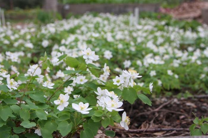 Eye-catching groundcover for shady gardens, with small white flowers in spring, held above delicate foliage. Good for rock gardens and woodland gardens. Tolerant of dry soils.