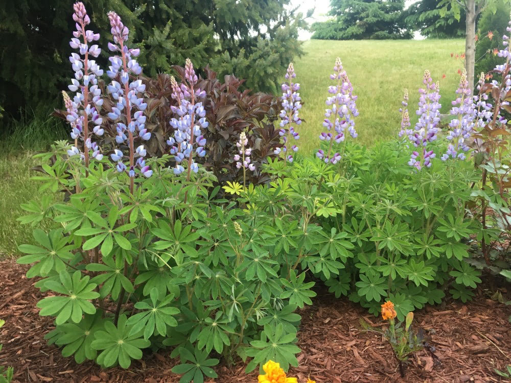 A native Lupine with spikes of indigo blue flowers lasting from late spring to early summer above divided leaves.
